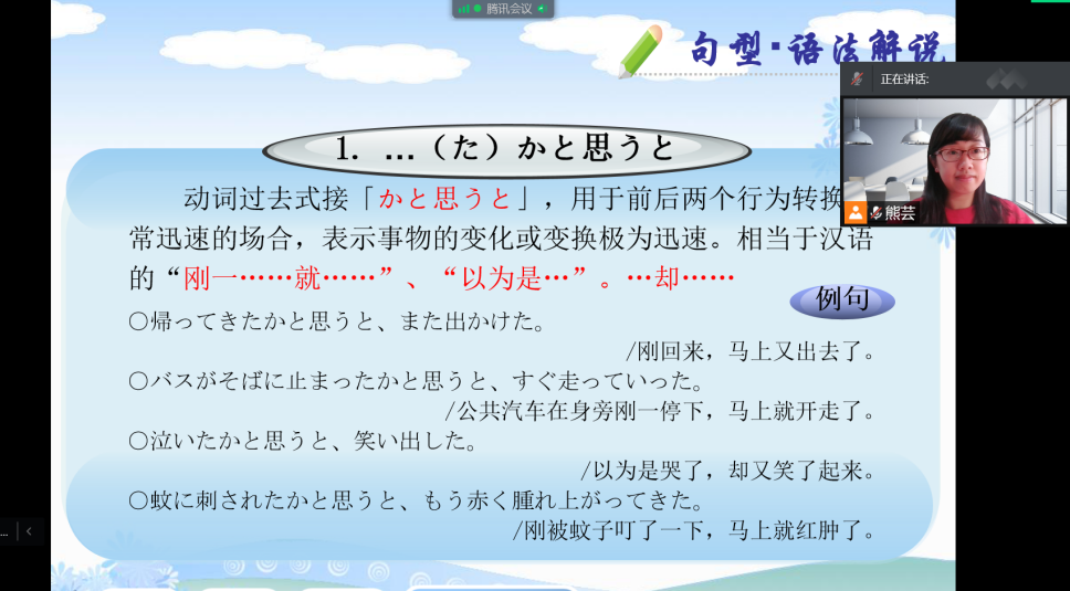 陈枫老师是商务日语专业教龄最短的一位教师,她利用这次线上教学,积极主动参与课堂听课活动,向老教师学习,努力提高自身的教学水平。