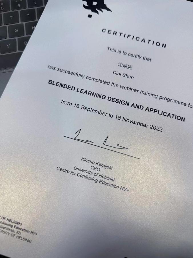 A total of 50 young teachers from different private universities in Shanghai participated in the program. Three of our teachers actively participated in the program, discussing with teachers from different universities about the development of blended teaching and its future development; listening to the experience sharing and guidance of senior mentors from different universities, completing case studies and discussions, and receiving a training certificate issued by the University of Helsinki, Finland in the first phase. This reflects the enthusiastic, energetic and positive attitude of our young teachers towards teaching development and personal capacity enhancement.