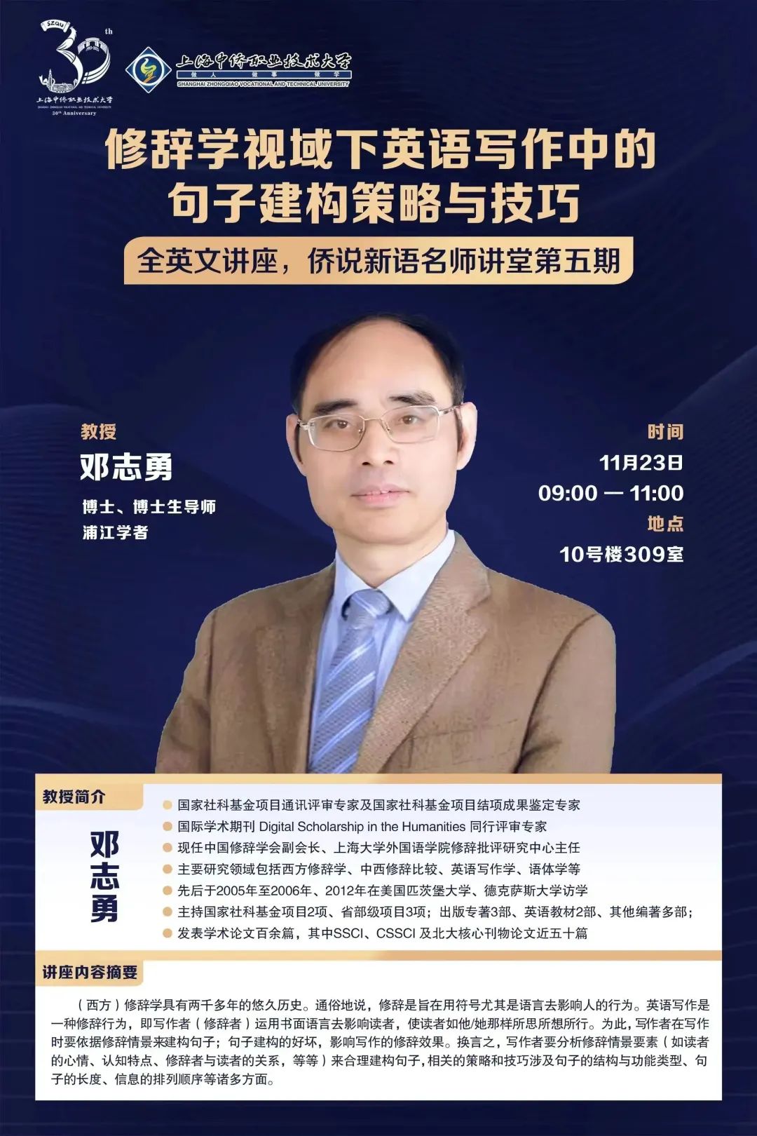 【名师讲堂】侨说新语名师讲堂第五期:修辞学视域下英语写作的句子建构策略与技巧