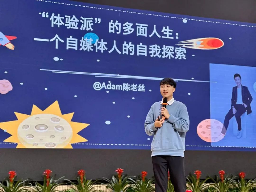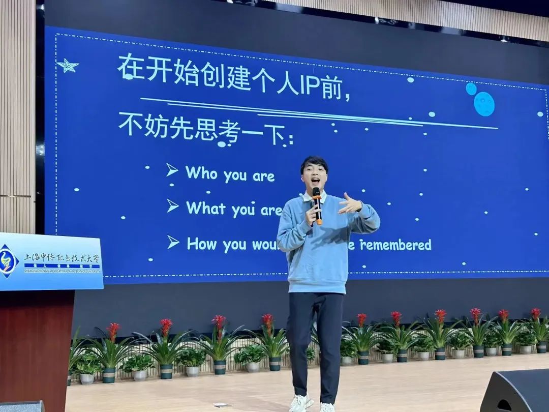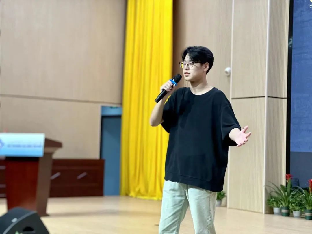 快看!是Adam陈渭中陈老师!作为活跃于网络的自媒体人,他经常用搞怪的方式与各种文化结合从而将大家逗的捧腹大笑。这次的脱口秀也一样,独属于陈老师的风趣感在他细细述说自己的经历时展现的淋漓尽致——不管是他突然发现将方言与英语结合能把欢乐带给大家;还是他在一步步拼搏,看过胜利的曙光也经历过彷徨时。他说“在热爱面前,脸皮没那么重要”,这句话送给自己,也送给在座的每位同学。