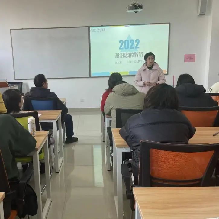 谢院长强调,大家要在现阶段各项工作的基础上,牢记人才培养的根本任务,以专业为载体,不断提升学生分析、解决问题的能力,培养出有创新意识的“外语人”。谢院长还传达了学校2022年新学期工作务虚会议的精神,对学院新学期工作部署进行了阐述。学院将继续加强人才队伍建设,着重教学成果的转化,推进学院专业建设,搭建平台支撑类指标体系,促进学院综合实力的进一步提升。