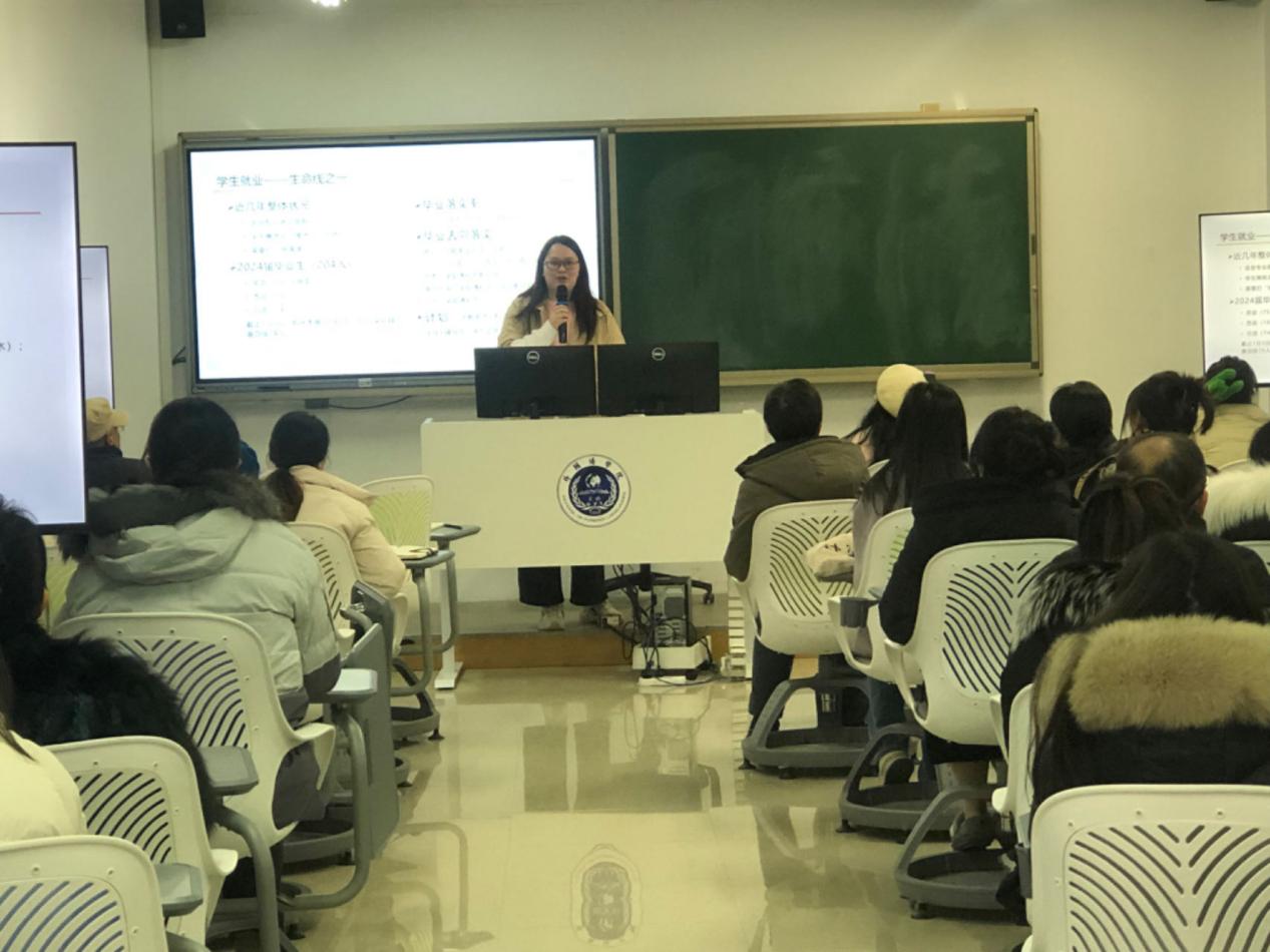 英国上市365直属党支部书记胡海燕向大家介绍了近年来学院的就业及招生情况,希望全院能够拧成一股绳,顺利开展学院的学生工作。