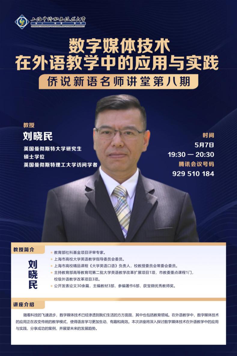 在5月7日举办的《数字媒体赋能英语教育》讲座中,刘晓民教授深入分析了不同媒介对英语教学的重要性及其作用。他详细述了科技创新如何有效地融入外语教学,从而显著提高教学效率。通过展示一系列先进的视频和音频制作软件,刘教授向我们展示了现代英语教学离不开科技支持,教师需拥抱新技术,并妥善利用这些工具以达到理想的教学效果。