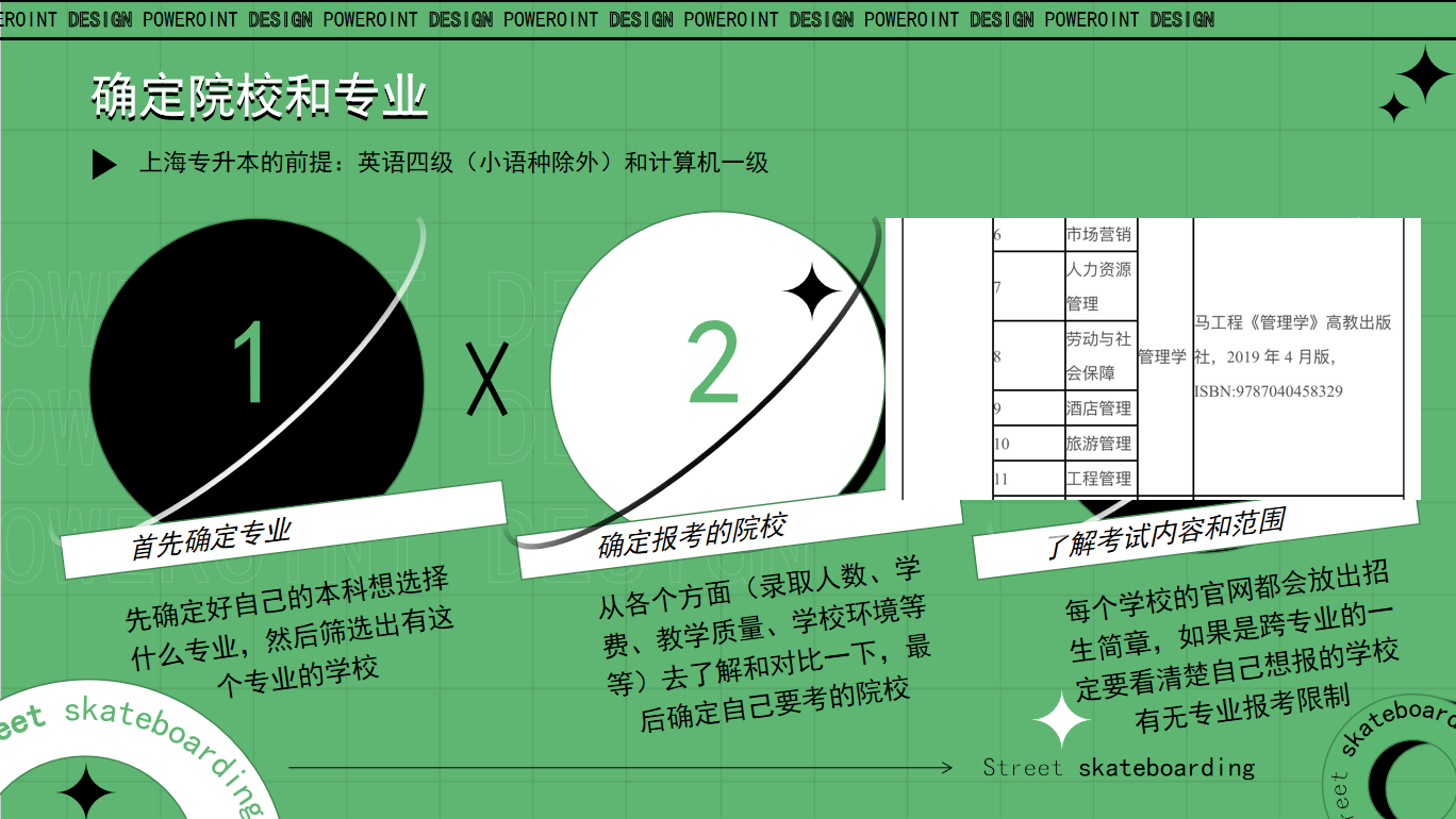 有了专本本的目标后,她就做出了规划。首先,确定专业,选择本科想学的专业,并筛选学校。其次,确定报考院校,了解学校的教育质量,环境等方面。最后,了解考试内容和范围,看清招生简章与面试和笔试流程。比起像无头苍蝇一样摸索,去了解现实,对比得出目标,才能更好地获取方向和动力,减少失误的发生。