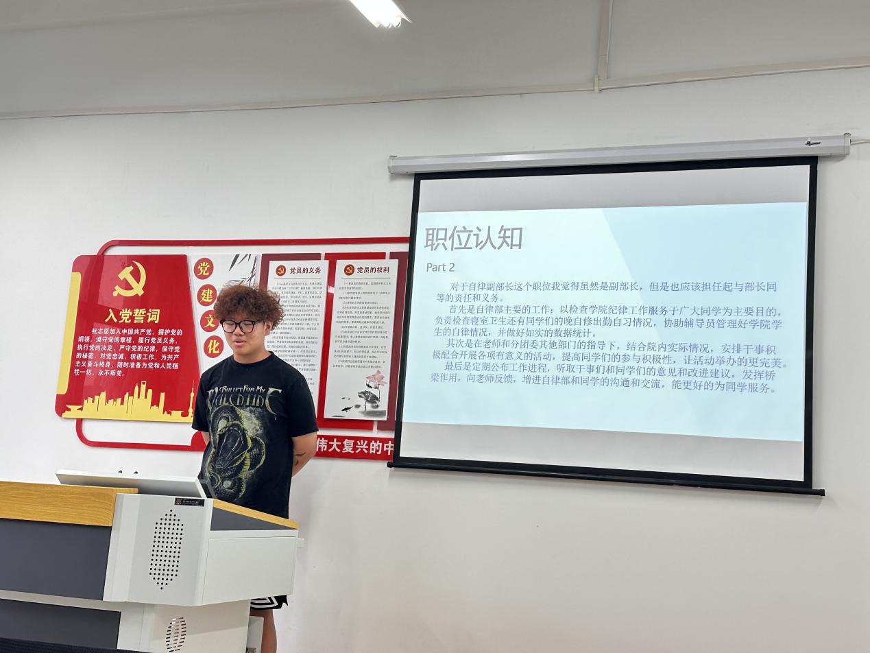在答辩现场,同学通过PPT展示、现场演讲等方式,向大家展示了自己工作经历、竞选优势以及未来规划。评委们根据同学们的自诉进行现场提问,与他们一起讨论了未来的工作规划,同时也针对答辩过程中的一些问题提出建议。希望各位同学们一起齐心协力,更好地肩负起为外院师生服务的重任,共同推动团委、学生会更好更快的发展。