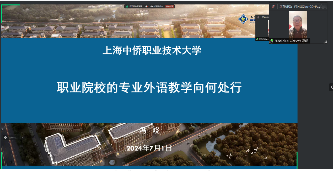 冯晓副校长在培训班上做了开场报告。他就“职业院校专业外语教学的未来方向”为主题,剖析了技术进步对职业教育带来的挑战,并提出了专业外语教学的应对策略。
