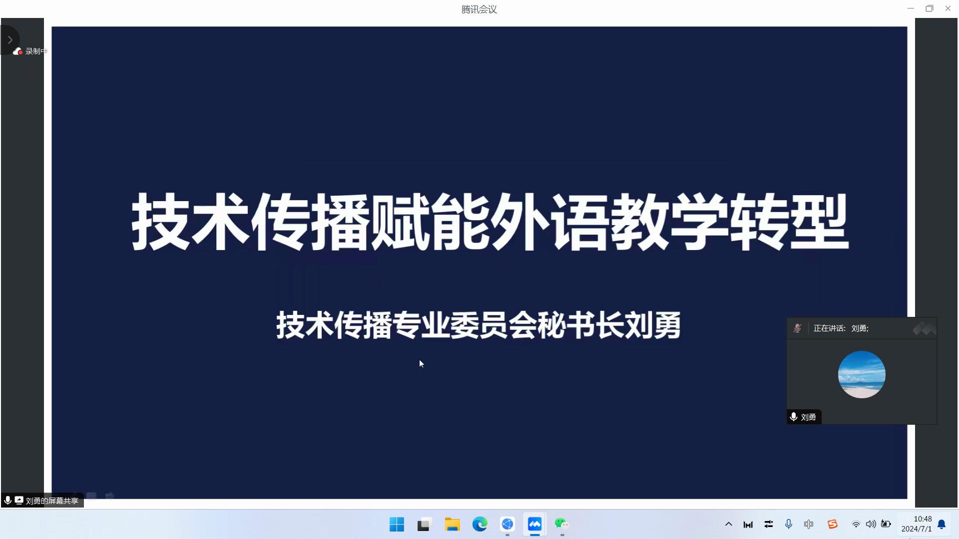 来自中国国际商会商业行业委员会技术传播专业委员会的刘勇秘书长在会议上就“技术传播驱动外语教学革新”发表了演讲,探讨数字化时代技术传播在外语教学中的核心价值和深远影响。