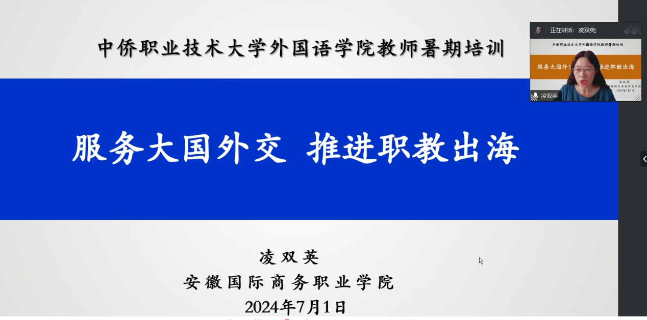 凌教授首先强调了职业院校服务经济社会发展的重要性。她指出,安徽国际商务职业学院紧密围绕国家发展战略,积极投身经济社会建设。她详细回顾了学院在服务大国外交、推动职业教育“走出去”方面所付出的努力和取得的显著成绩。