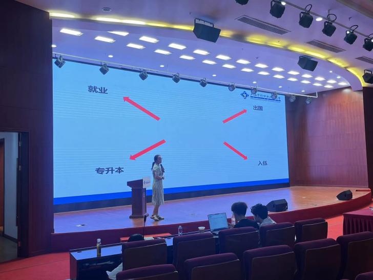 作为我们的资深学姐,学院直属党支部书记胡海燕结合自身经历激励着莘莘学子要以勤勉为舟,以努力为浆,珍惜大学时光,在日积月累中描绘属于自己人生的美好画卷。不仅如此,胡书记还向同学们介绍了专升本的基本情况和一些国际交流项目,为同学们提供更多的升学路径,助力同学们实现更高的人生目标。