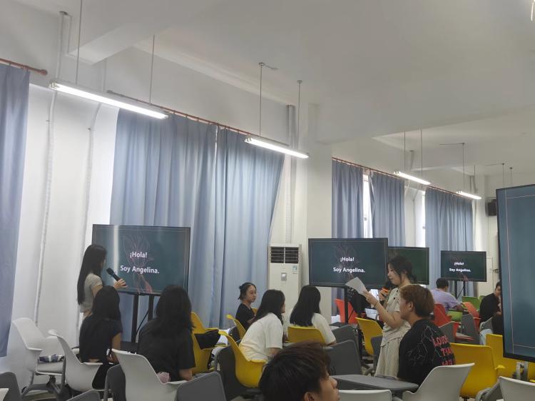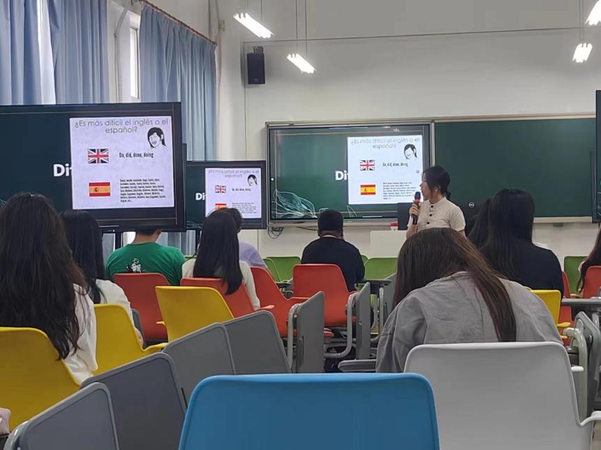 在活动中,宁康老师向同学们介绍了西语的学习方法和在校三年的学习规划,以及平时的上课要求。