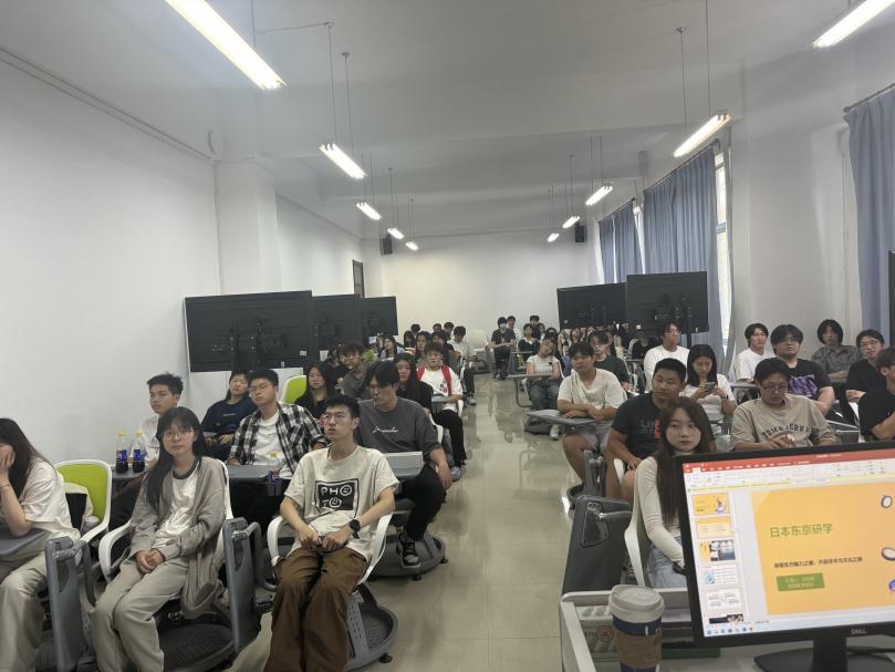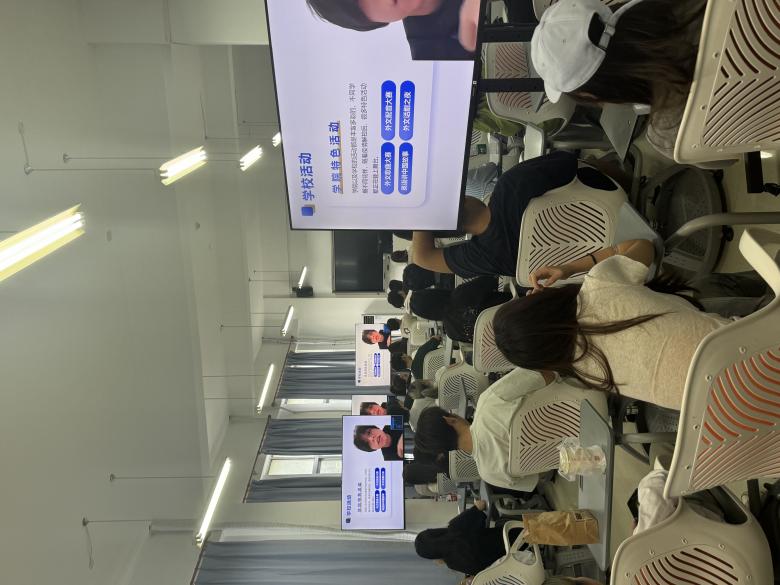 在分享会上,学长在课堂体验,如何平衡课堂与课外活动关系,学习兴趣小组,社团组织与动漫社,国际交流经历等方面展开了分享。
