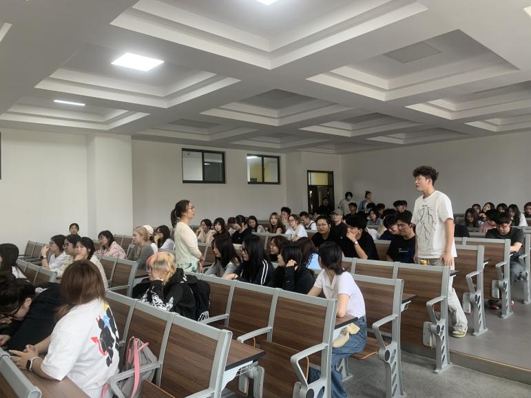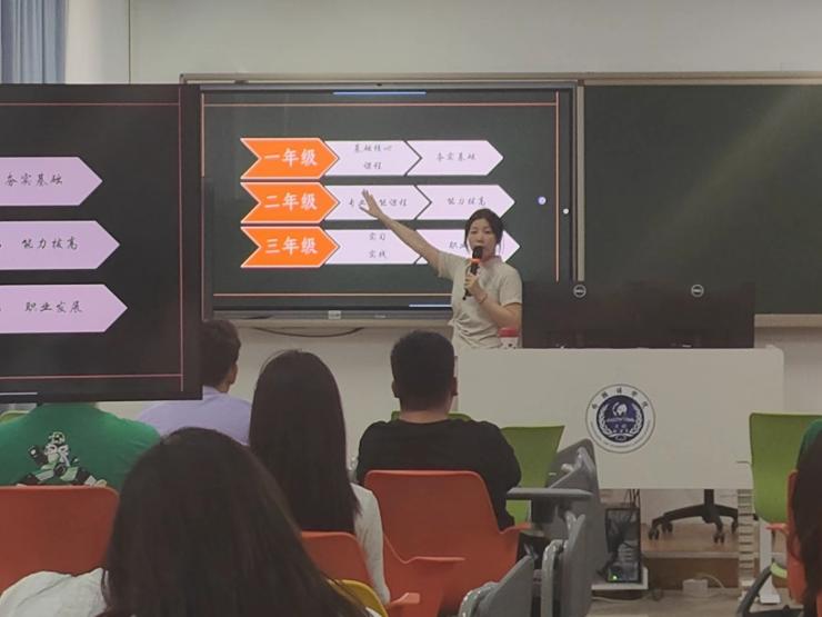 英语专业主任李立颖老师向24级新生们介绍了本学期将要学习的课程,以往学校举办的比赛,鼓励同学们努力学习,积极地参加比赛、活动。