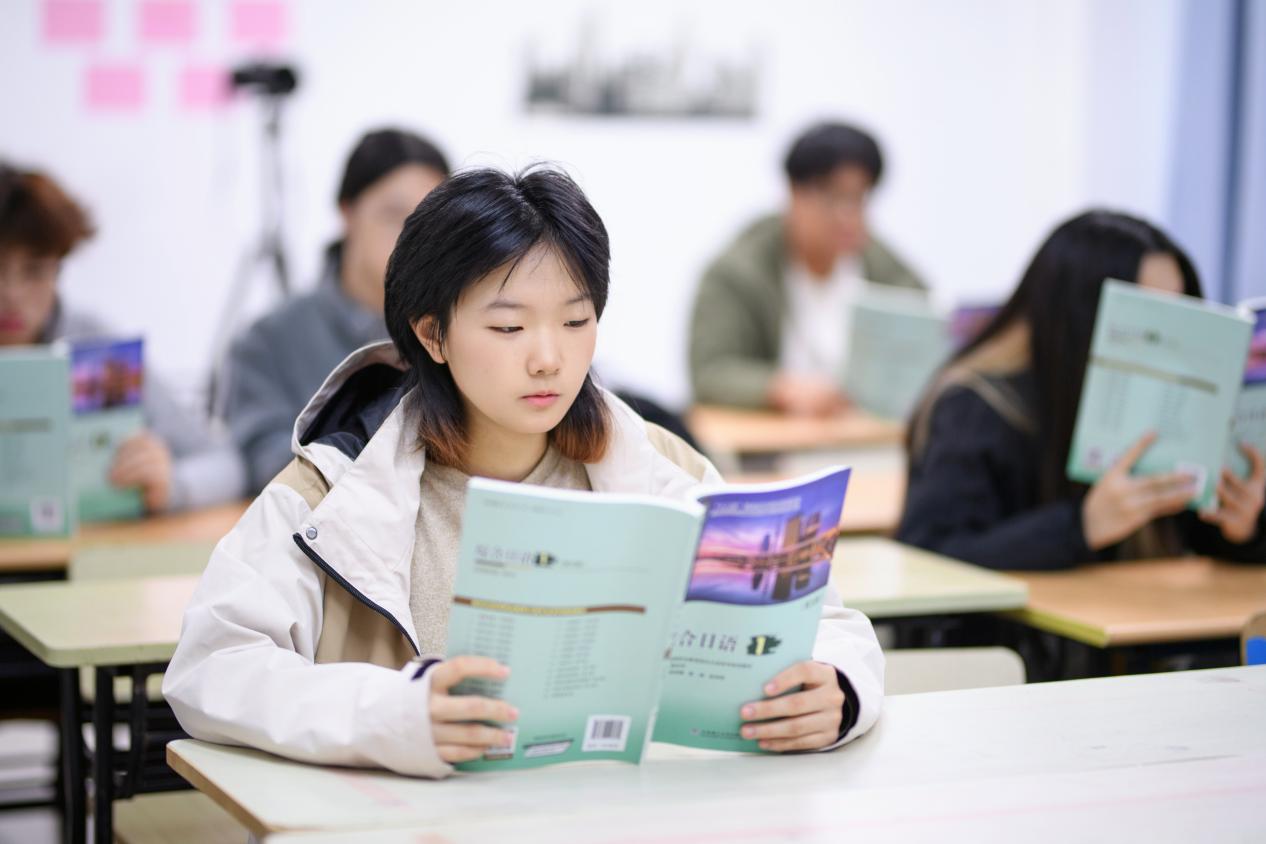 学生们通过教师带读、自主朗读、搭档进行会话练习等多种形式,不断提高发音准确度和语言流利度。早自习内容涵盖了教科书重点课文、重点语法、词汇变形以及日常会话,帮助学生更好地掌握日语发音规则,锻炼听说能力。早自习不仅为学生们提供了一个良好的学习环境,还培养了他们的自律意识和时间管理能力。学生们逐渐养成了早起的习惯,合理安排自己的学习和生活时间,为全天的课程学习打下了坚实的基础。