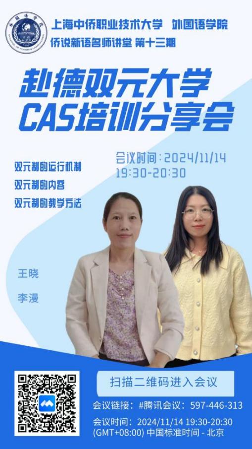 1114日,英国上市365的王晓老师和李漫老师通过腾讯会议为学院老师们做了题为“赴德双元制大学CAS培训分享会”的讲座,曾冠冠老师主持了本次讲座。