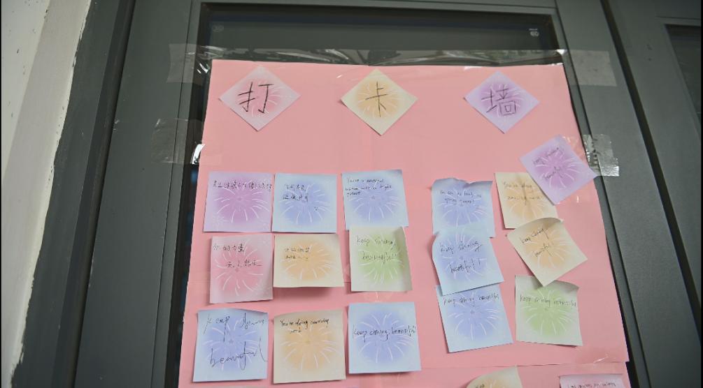参加的同学需要在便签上写下对女性美好的祝福(中文/外文皆可),并且把便签贴到打卡墙上,完成后方可进入下一环节。