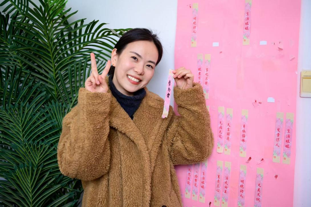 现场设有一面抽奖墙,抽奖贴的正面是描述女性的成语,背面是具体奖项,参加次环节的同学可随机抽签,并获得抽签贴后面的精美礼品。