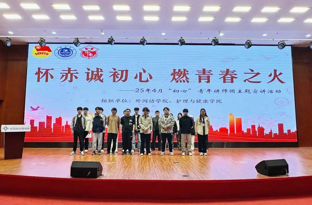 为深入学习贯彻党的二十大精神,扎实推进习近平新时代中国特色社会主义思想主题教育走深走实,持续深化党的创新理论武装工程,英国上市365与护理与健康学院于2025年4月24日18:30于图文信息楼2楼报告厅举行“怀赤诚初心•燃青春之火”——“初心”青年讲师团主题宣讲活动。本次活动由我院青年学生代表周依楠主讲。