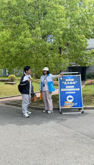 由于本次大赛的参赛选手来自上海市的不同高职院校,本组同学安排在校园内的必经之路处,为参赛选手引导进入比赛会场。