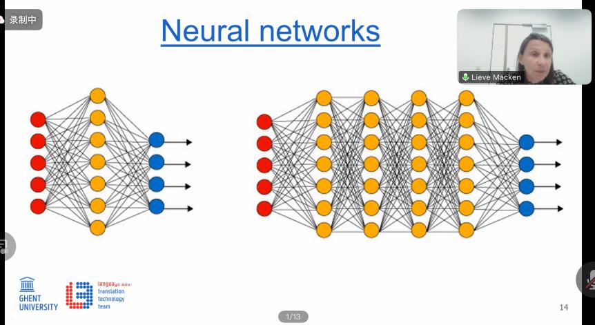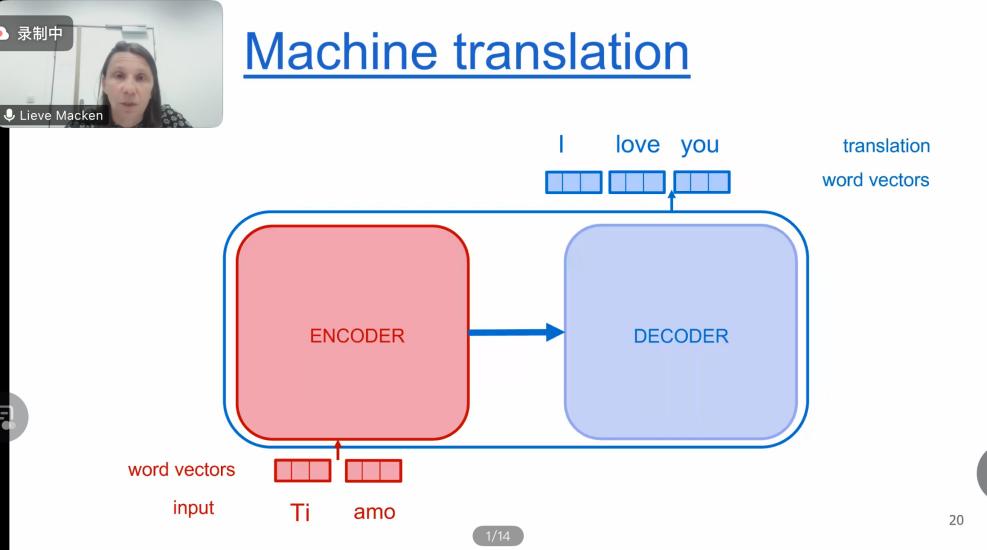 讲座伊始,Lieve Macken系统地介绍了机器翻译架构的发展历程。从20世纪80、90年代的传统机器翻译系统,到如今依靠大量数据与神经网络运行的现代系统,机器翻译发生了巨大变革。在神经网络模型中,单词被转化为数字,通过编码器和解码器处理,单词间的关联得以建立。她强调,语言之间的相关性对翻译质量有着重要影响,相关性越高,翻译质量往往越好,同时也指出当前主流翻译工具在支持语言数量上与世界语言总数的差距。