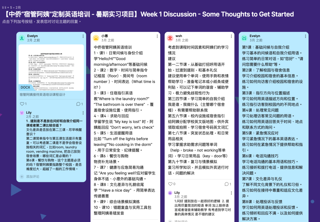 自暑期初项目启动,彭丽老师便全程指导学生投入高强度、全过程的实战训练。团队不仅完成了需求调研、学情分析、课程规划等前置工作,更对每一节课的教学目标、重点难点、教案设计及授课材料进行了至少两轮的精细打磨。尽管最终仅呈现十次课程,但整个暑期的紧密筹备,让学生深刻体会到“台上一分钟,台下十年功”的职业精神。