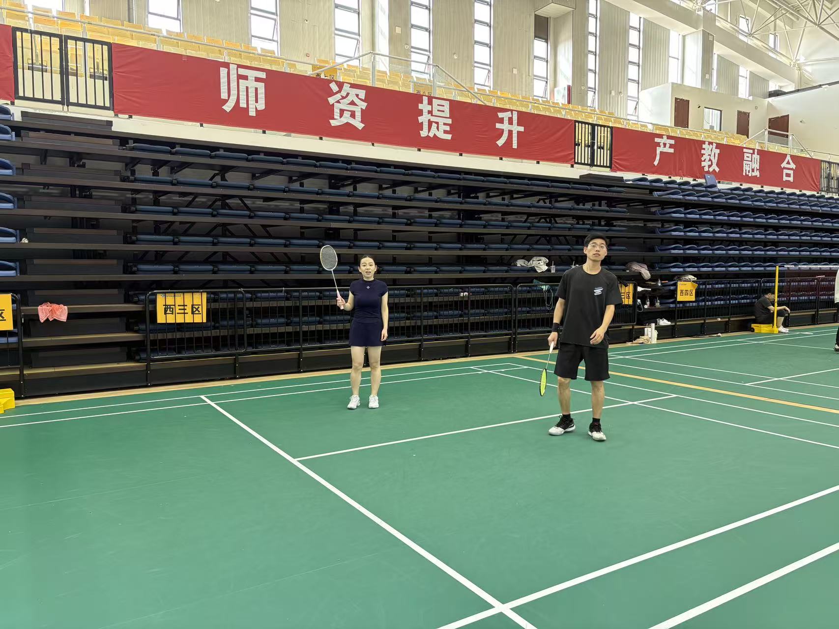 在实心球赛场,杨天予老师奋力一掷,划出优美弧线,他凝聚全身力量于瞬间爆发,沉甸甸的实心球承载着汗水与信念飞跃远方。最终以优异成绩斩获亚军,在羽毛球混双赛场,郭宇博老师与杨若蕖老师配合无间,闪耀全场,网前轻吊精准细腻,后场劈杀势如破竹。他们一路过关斩将,凭借默契的配合与精湛的球技,最终勇夺亚军,为外院荣誉榜再添光彩,赢得满场喝彩。