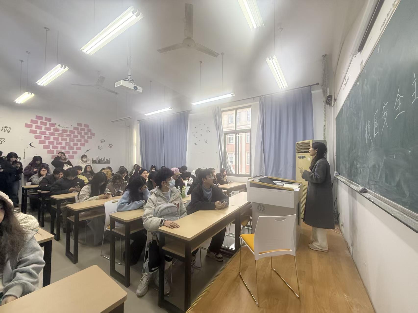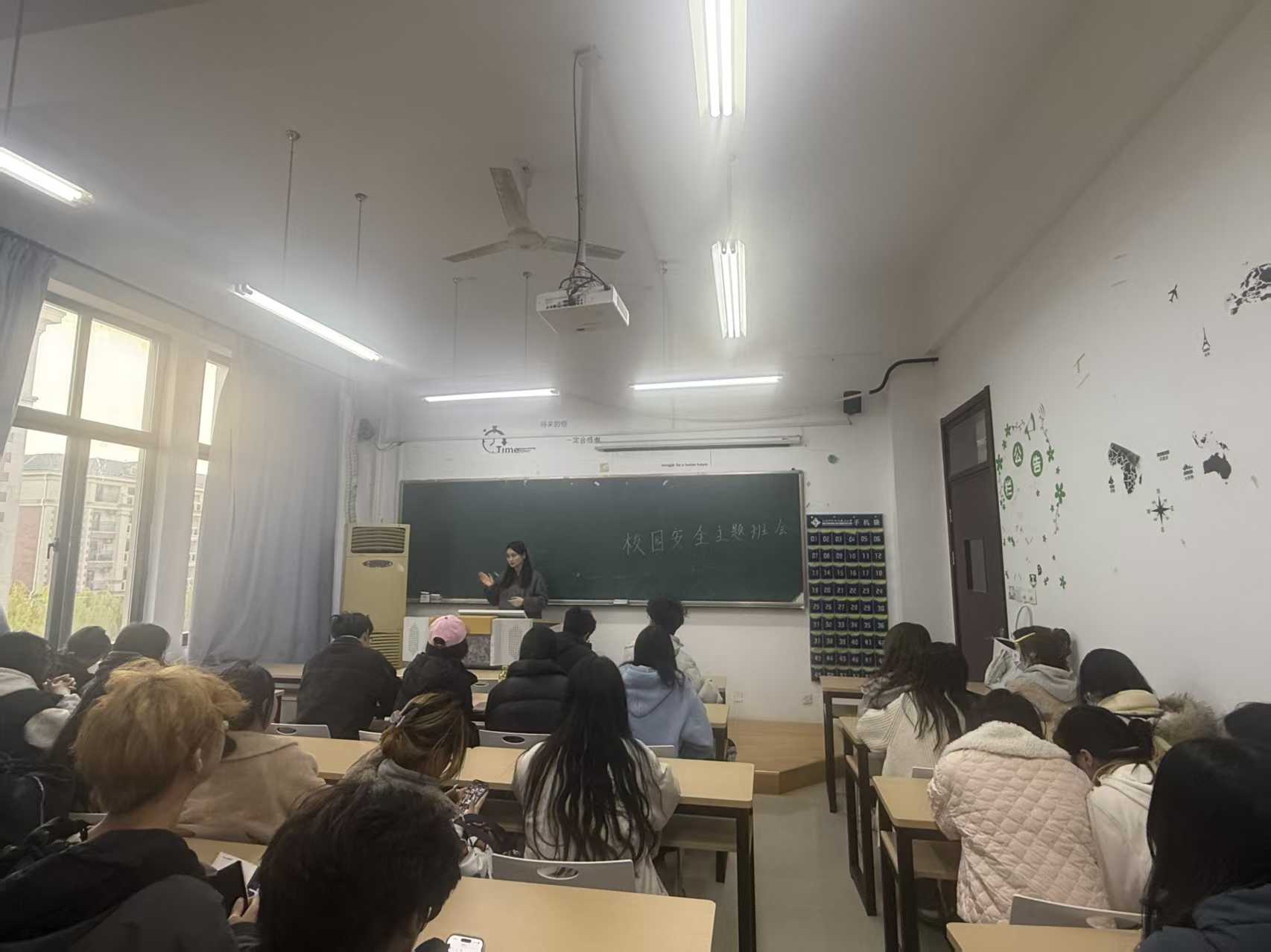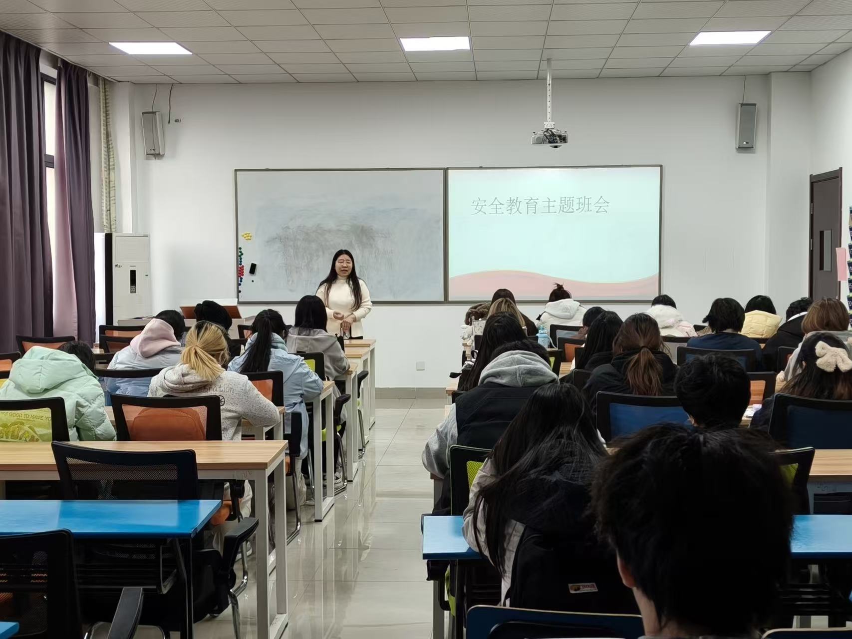 班会上,辅导员梁雅平、马维莲两位老师结合近期校园及周边安全案例,重点讲解了宿舍用电安全、消防安全、出行安全及网络诈骗防范等核心内容。从“违规使用大功率电器的危害”到“火灾逃生的正确姿势”,从“校园周边交通出行注意事项”到“常见网络诈骗的识别技巧”,每一项内容都紧贴同学们的日常起居与学习生活,通过真实案例敲响安全警钟,引导同学们时刻筑牢安全防线,严守安全底线。