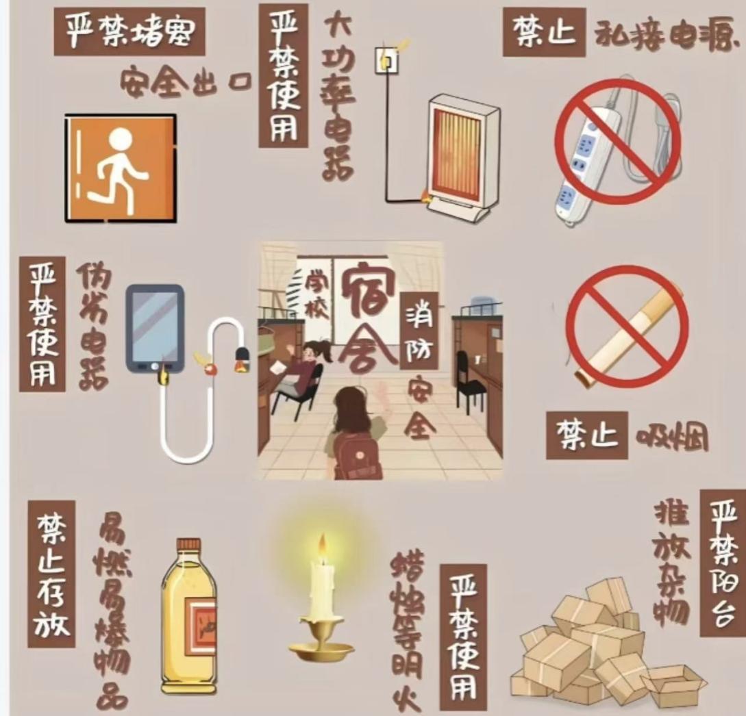 防火不是小事,安全要记在心里!守护宿舍安全,既是保护自己,也是护着室友~ 转发给同住的小伙伴,一起杜绝隐患,把小窝守得稳稳的,平安住校园!