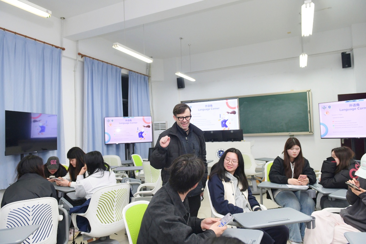本次活动特别邀请赫尔辛基未来工程学院外教Gregory Houser参与交流,与学生围绕不同国家节日文化展开面对面互动,在真实交流情境中有效提升了学生的语言运用能力与跨文化理解能力。